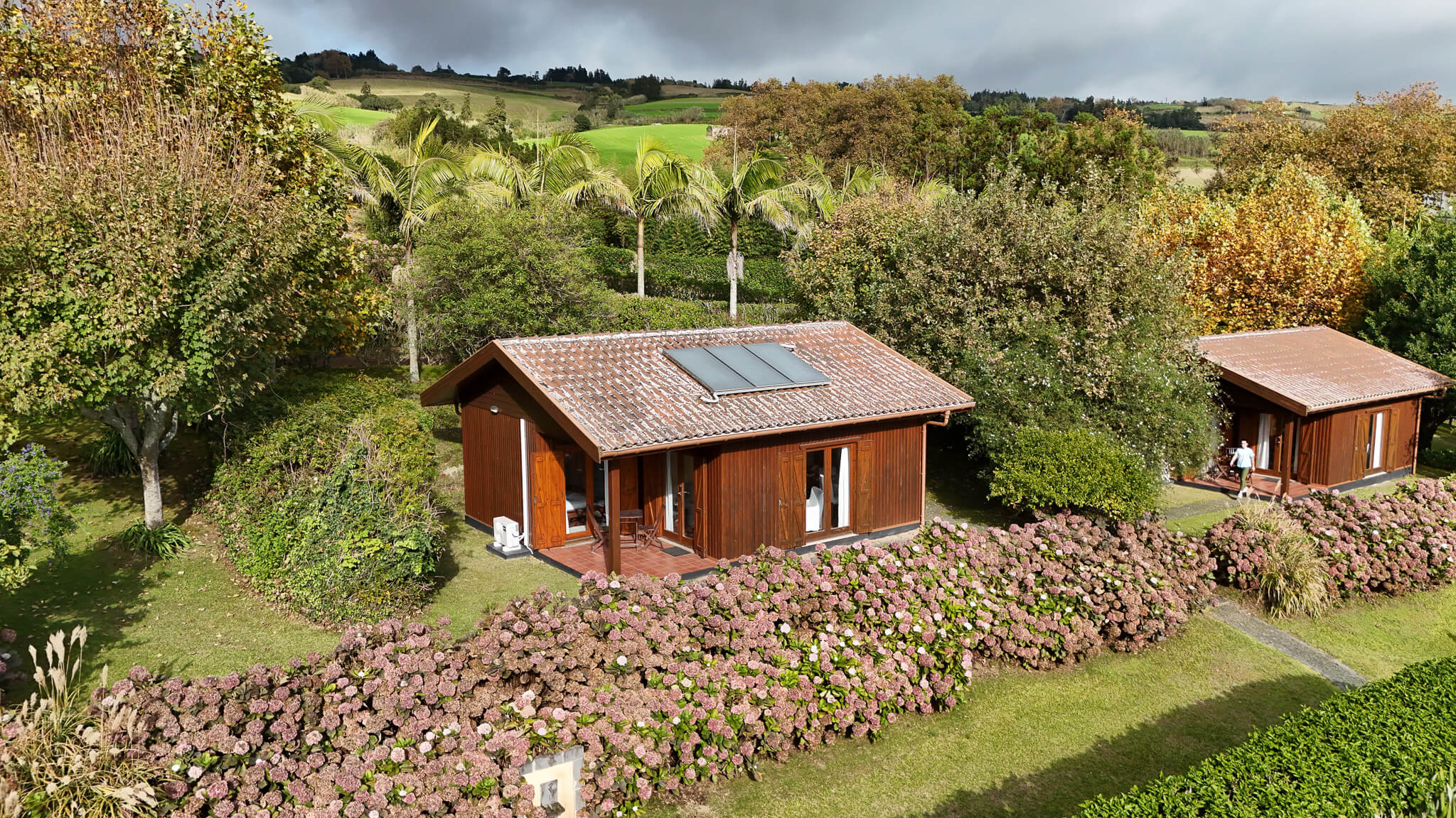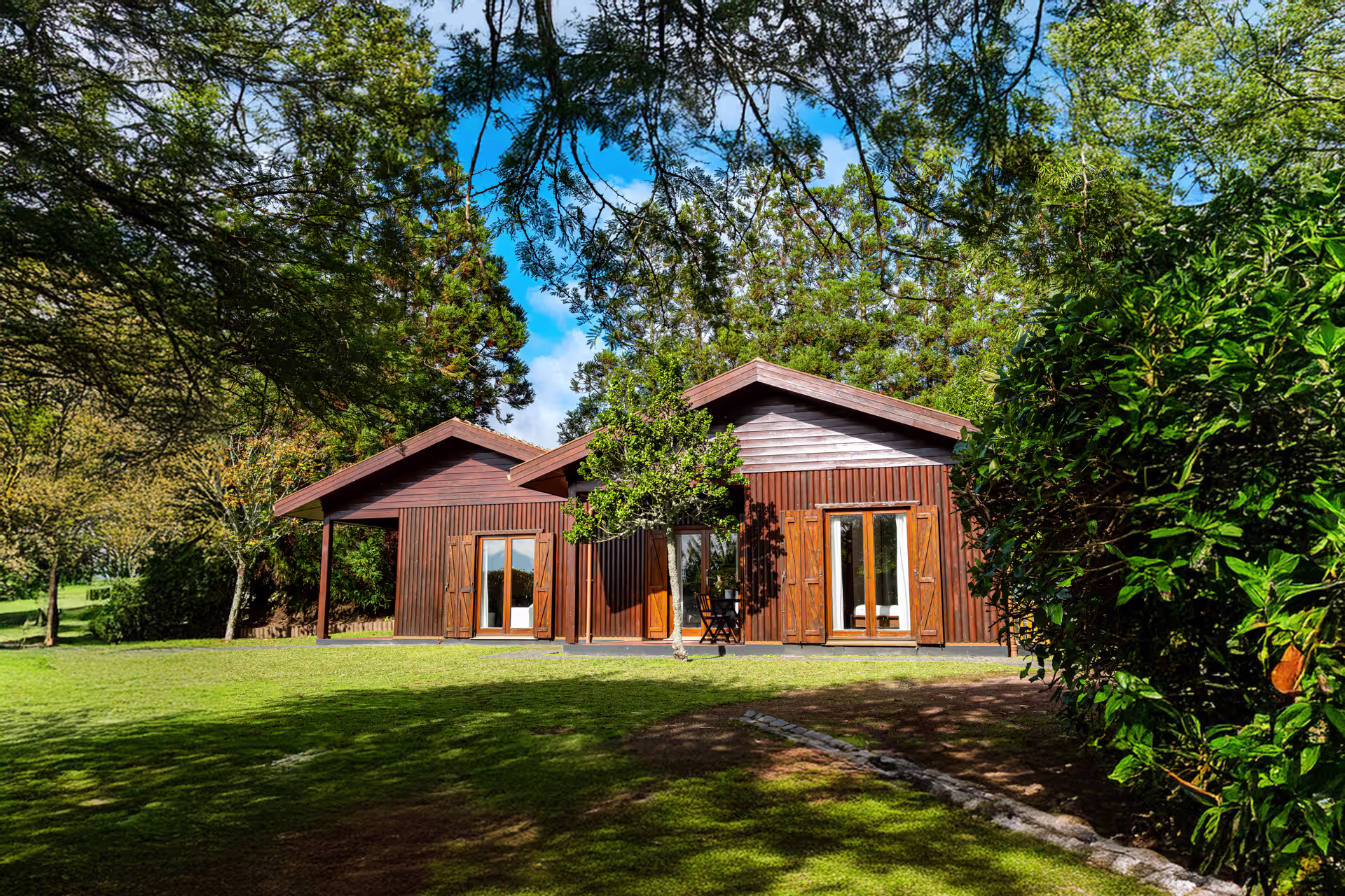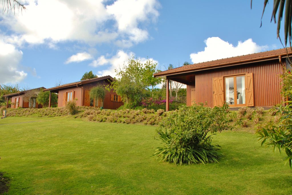 Seis casas de madeira cuidadosamente integradas em 9000m² de jardim, criando harmonia com anatureza, fauna e flora açoriana.